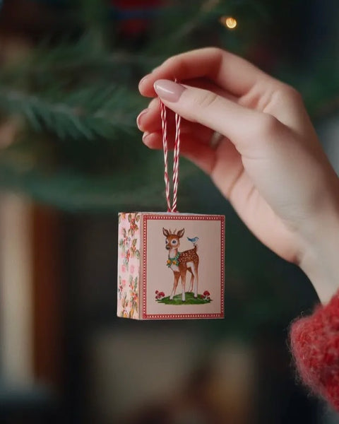 Discover the perfect holiday gift that fits in the palm of your hand and hangs on the tree! Hand-tied Baker's twine and adorable woodland friends by Massachusetts-based illustrator Cara Finnerty Coleman (@heytherelittlebears) give these hangable gifts a homemade touch. Clean, Swedish Pine is the scent of the season, transporting you to a winter wonderland!