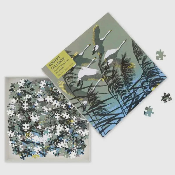 This new jigsaw will satisfy your need for a challenge, with the beautiful Swans Flying over the Reeds by Robert Gillmor. This 500-piece jigsaw is intended for adults and children over 13 years. Not suitable for children under 3 years due to small parts. Finished Jigsaw size 490 x 360mm/19.3 x 14.2 ins. Includes an A4 poster for reference.