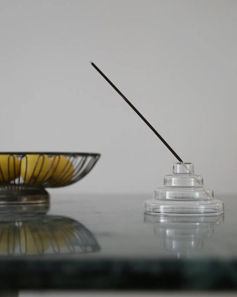 Inspired by Mesopotamian architecture, the incense holder perfectly suspends stick incense and is a perfect pedestal to watch your incense burn.